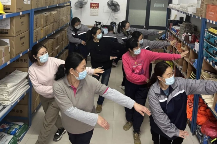 為促進(jìn)員工身心健康,豐富駐廠(chǎng)員工的業(yè)余生活,各生產(chǎn)工廠(chǎng)均安排了形式多樣的文體活動(dòng)。葉片事業(yè)部要求各工廠(chǎng)至少準備一間觀(guān)影室、一間活動(dòng)室,方便員工開(kāi)展文體活動(dòng),積極組織摜蛋比賽、羽毛球比賽等。在此基礎上,開(kāi)展的車(chē)間、宿舍6S評比工作得到積極響應,大家熱情高漲,成效斐然。恰逢2022年卡塔爾世界杯,在做好個(gè)人防護的前提下,各工廠(chǎng)積極組織駐廠(chǎng)員工工作之余觀(guān)看球賽,緩解閉環(huán)生產(chǎn)帶來(lái)的心理壓力,以保持良好的狀態(tài)。事實(shí)上,對于女職工來(lái)說(shuō),閉環(huán)生產(chǎn)帶來(lái)的心理壓力更大。管罐事業(yè)部制品車(chē)間駐廠(chǎng)員工中有50余名女工,上有老下有小,容易滋生焦慮情緒,班長(cháng)夏秀梅發(fā)揮個(gè)人特長(cháng),飯后帶領(lǐng)女工們跳起了廣場(chǎng)舞,鍛煉身體的同時(shí)舒緩情緒。