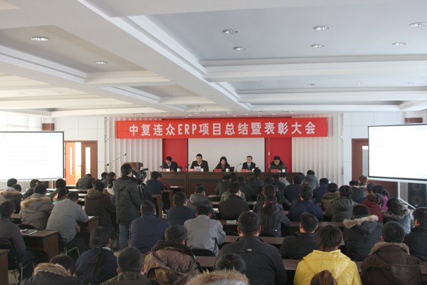 12月24日,中復連眾ERP項目總結和表彰大會(huì )在五樓會(huì )議室舉行,連云港市經(jīng)信委科技處處長(cháng)馮燕琴、中復連眾總經(jīng)理喬光輝、東軟公司總經(jīng)理章越、慧德公司總經(jīng)理陸韌鋼出席了會(huì )議,會(huì )議由中復連眾副總工程師田超凱主持。