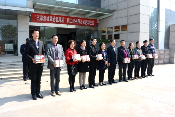 在啟動(dòng)儀式上,市總工會(huì )向中復連眾、振興集團、市公路管理處、云臺農場(chǎng)等10家基層單位各贈送了一千冊圖書(shū)。中復連眾職工代表向全市職工發(fā)出了題為《讀書(shū)成就夢(mèng)想  勞動(dòng)創(chuàng )造未來(lái)》的倡議書(shū),號召大家與書(shū)為友、熱愛(ài)閱讀,讓思考伴隨一生,共享讀書(shū)樂(lè )趣。